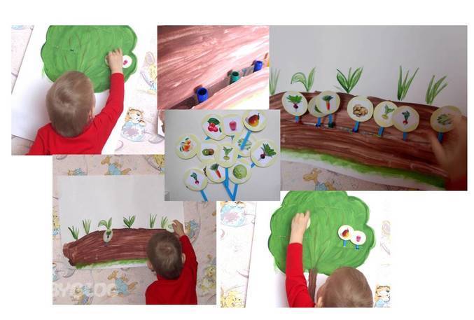 При подготовке, передо мной встал вопрос, как же наглядно показать ребенку что фрукты растут на дереве а овощи в огороде.Есть конечно тематические макеты на эту тему, но они пока у нас только в разделе хотелки.