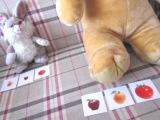 Неделя началась с того, что Косолапый Медведь Иванович принес нам два мешка, в одном лежали фрукты, в другом овощи. Кирилл поочередно доставал из мешка продукты и выкладывал, при этом конечно сам все рассказал, что есть что, какого вкуса и есть ли косточка- это главный момент для него)))))))))). Застопорился немного вынув чеснок, решил попробовать его на вкус и Ужаснулся- Мама он горький - услышала я. Я конечно специально не стала его предупреждать о том что он горький, так бы и не попробовал.
