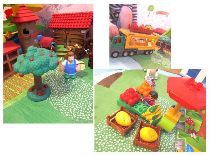 Играли в Рынок, как раз к Тематической недели купили очередной номер Журнала Животные на Ферме и в нем была такая замечательная Яблоня. Так сказать наглядный пример, что фрукты на дереве растут