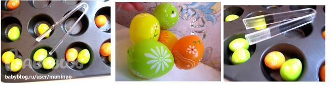 Еще (не по теме но хочу показать вам) купила вот такие милые декоративные яички к пасхе. Столько с ними играли и ловили в воде и считали. Сын с ними не растается