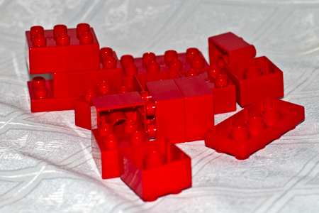 Взяли много деталей красного цвета из Lego и постороили красную конструкцию, под названием "ба", т.е башня в переводе с языка сына: