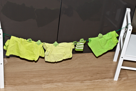 Потом развешивали на зеленую веревку зеленые вещи и прищипывали зелеными прищепками.