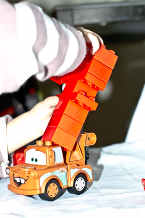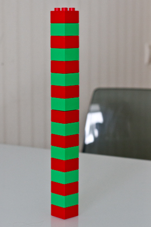 И на последок, нужно было построить башню, чередуя красные и зеленые детали. Каждый раз проговаривая цвета: