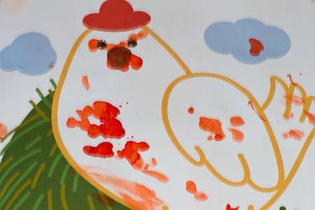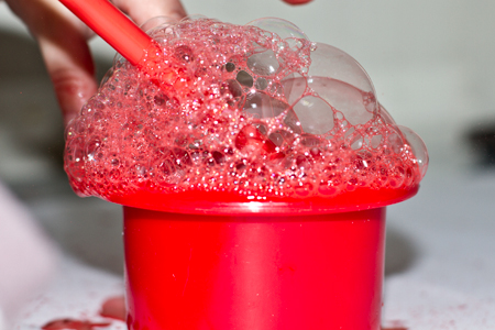 Ребенок получил опять все ту же красную чашку и зачем-то красную соломку. Когда я сказала, что нужно дуть в соломку, на удивление малыша из чашки полезла красная пена. Столь увлекательное занятие у нас затянулось надолго: