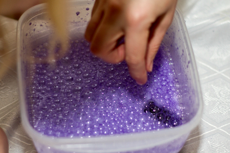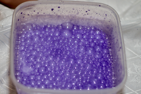Я сделала из соды, воды и фиолетовой гуаши "волшебные камешки". В массу положила маленькие фигурки: