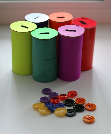 Эта игра затянула сына. Он складывал обратно в коробочки фишки, закрывал их, открывал опять, и расскалдывал по чашкам. К этой игре присоединилась и дочка потом :)