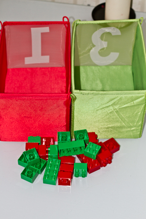 Сортировали Lego по коробкам. Красные детали в красную коробку, зеленые - в зеленые: