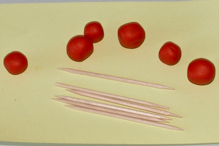 В итоге, сын у меня наделал молекулярные модели :)))) Вообще, я думала он будет просто тыкать все зубочистки в один шарик. В общем, вот что получилось :