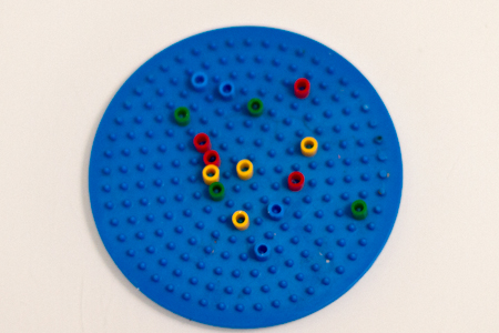 И в конце дня, мы взяли для моторики термо-мозику икеевскую, и на синий кружок ставили фишки тех цветов, которые изучили: