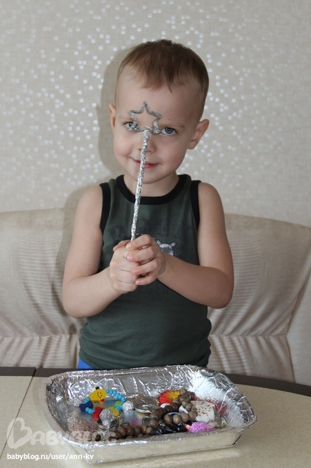 Мистер Умелец или Очумелые ручки (поделки, аппликации, интересные находки, идеи и задумки)После просмотра очередной серии Фиксиков "Волшебная палочка", Артёмка так проникся темой волшебства и фокусов, что ему срочно потребовалась волшебная палочка. Я недолго думая, смастерила её из обычной фольги за пять минут. А еще мы обклеили обычную коробочку фольгой, чтобы она тоже стала волшебной, туда сложили разные сокровища и секретики: