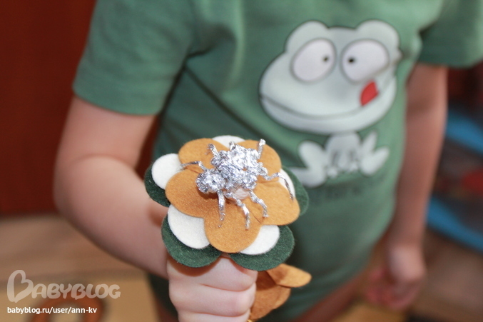 Вечером наш папа смастерил такого клёвого паучка, сказал, что они в детсве таких крутили. А я почему-то совсем не помню из детства поделок из фольги - максимум снежинки к Новому году.