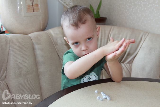 из них мы сделали бусы в подарок бабушке, которая приехала в гости.