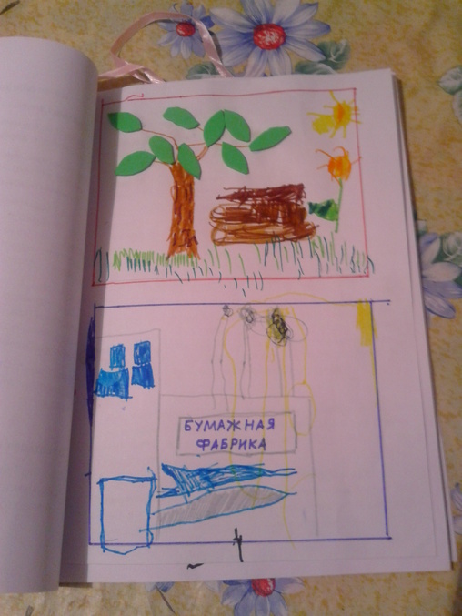 ну раз уж мы готовили книгу то тут же сделаи иллюстрации на тему из чего и где делают бумагу