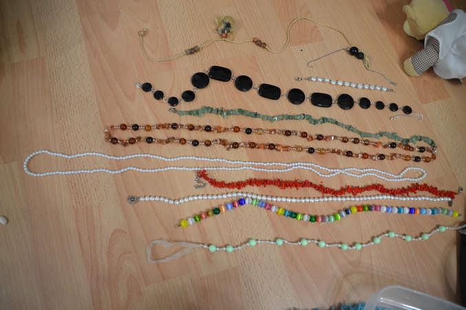 Играли моими бусами, я не знала, что у меня их так много, носить не нощу, а они лежат и ждут своего часа, вот и дождались)))) Смортели из чего делают бусы, я рассказала от куда берется жемчуг, так теперь Матвей когда играет с ракушками, та смотрит не затерялась ли где жемчужинка. А еще искали самые длинные и самые короткие бусы.
