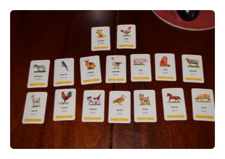 Карточки нам очень-очень понравились, они такого очень небольшого размера (Степа вообще фанат всяких маленньких карточек), картинки очень хорошие, еще и темы очень хорошо подобраны(семья, дом, еда, посуда, растения, животные, человек, одежда, обувь, школа, увлечения, профессии, город).