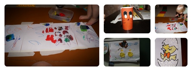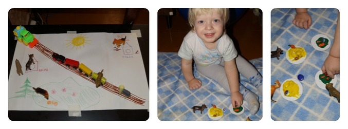 Соорудили небольшой собачий городок по примеру Светланы (Suvimaca), Степку он к сожалению вообще не заинтересовал. Зато катали собак по квартире за веревочку в джипе, кормили наших собачек завтраком, обедом и ужином (пластилин, фасоль, бусины).