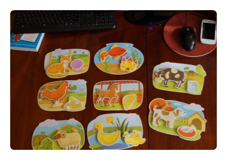 У нас были только кошка с собакой, но у них в серии есть еще корова и лошадь, курица и цыпленок, утка и свинья.