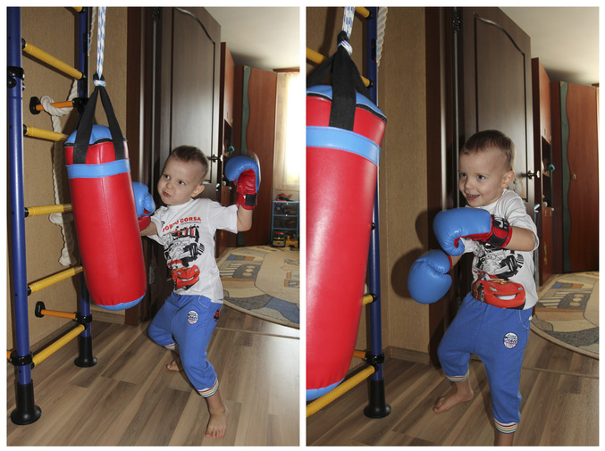 Ну и любимое занятие - бокс, грушу мутузит до седьмого пота)))