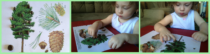 Для Анюты сделала заготовки шишек, а потом и сама она "творила" ))