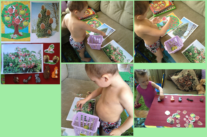 На распечатанные деревья и куст налепила распечатанные и вырезанные плоды и готово ))