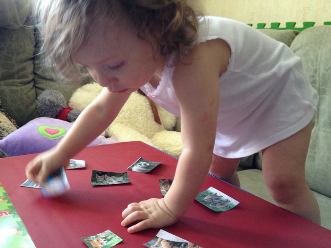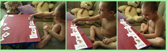 Затем дала Ванечке последовательность из 3х - заяц, белка, еж. Ваня не сразу понял, все пытался зайчиков друг за другом выложить, но потом сообразил что к чему и доделал ))