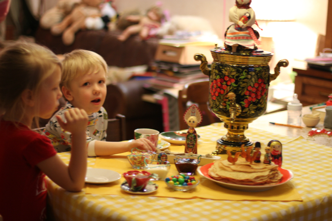 слушали песенки про блины, подпевали и подыгрывали)