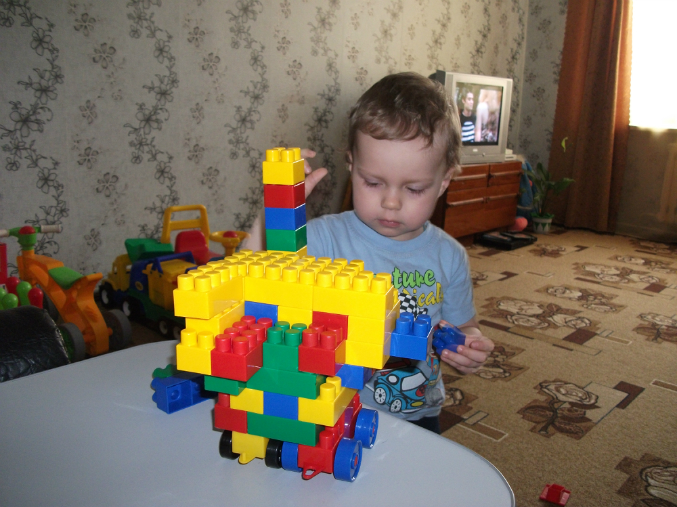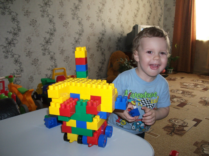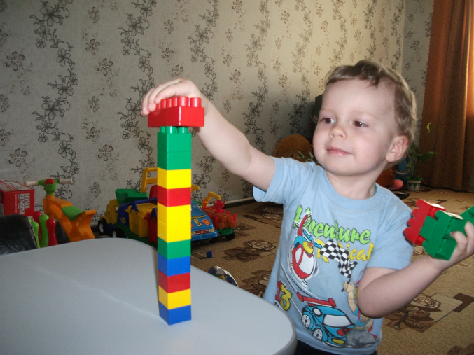 Развивающие игрушки (пазлы, вкладыши, конструкторы, мозаики)Достала "из заначки" конструктор Никитин,который папа покупал около года назад.Не видел его Никитос месяца 3 точно.Сколько интереса!!!!!!!!Второй день с ним сидит!!!И ничего не надо-ни улица,ни машинки,ни мультики)))Только "бася" и "дом" (башня и дом).