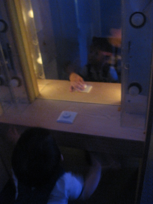 Волшебное зеркало. Когда горят лампочки - видишь свое отражение, а когда лампочки выключаешь - видишь человека, сидящего напротив. Очень эффектно и даже страшновато)
