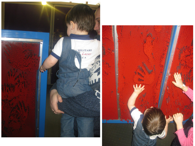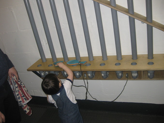... и пошли наконец-то смотреть экспонаты. Огромный плюс этого музея в том, что ребенок может сам все потрогать, покатать, побросать, т.е. принять непосредственное участие в эксперименте и понять "как это работает". Первый экспонат показывает как могут катится некруглые предметы