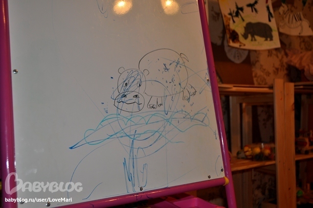 На мольберте дорисовывали для бегемота озеро, а зебре полоски и травку