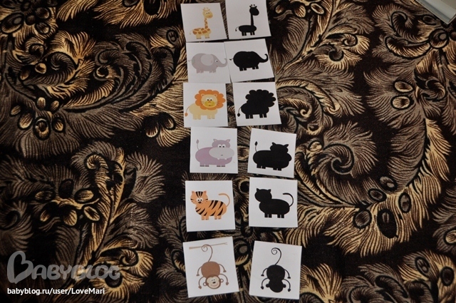 И картонные пазлы, потом сравнивали их с фигурками животных