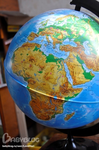 На сегодняшний день (прошёл 1 месяц) Вика безошибочно показывает на карте Африку, а глобус остаётся до сих пор средством для веселья и материки мы на нём пока не хотим изучать, как бы мама не старалась...