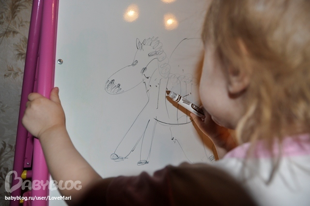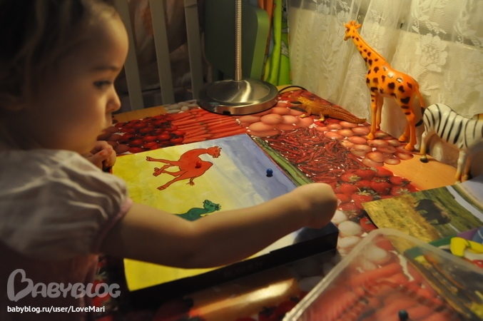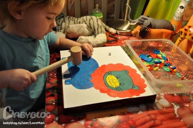 Потом я сделала волшебного льва и мы забивали цветные кнопки по цветам