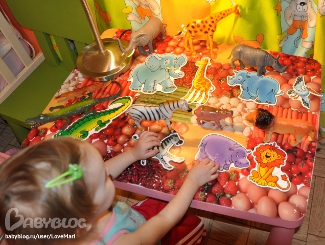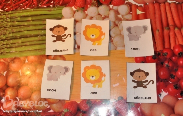 Сопоставляли фигурки животных с картинками