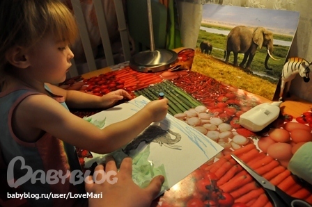 Родители, правда, глупее своих детей и только после проделанной работы я поняла что на колаже допущена грубая ошибка. Думаю потом просто буду дочку спрашивать кто из животных в Африке не живет)))
