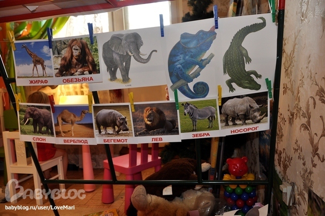 Новых животных вводила посредством карточек и фигурок, карточки прищепками вешали на леску