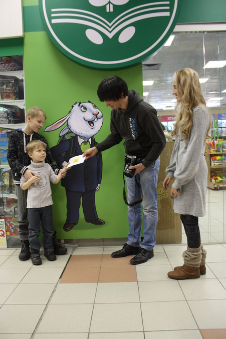 Немного опоздав, мы все-таки ворвались в ТЦ Черемушки и с воплем:" ГДЕ ТУТ БЕЛЫЙ КРОЛИК???", бросились к ближайшей работнице магазина. Успешно взобравшись на 4 этаж, мы без труда нашли самого Кролика. И немедленно включились в работу!