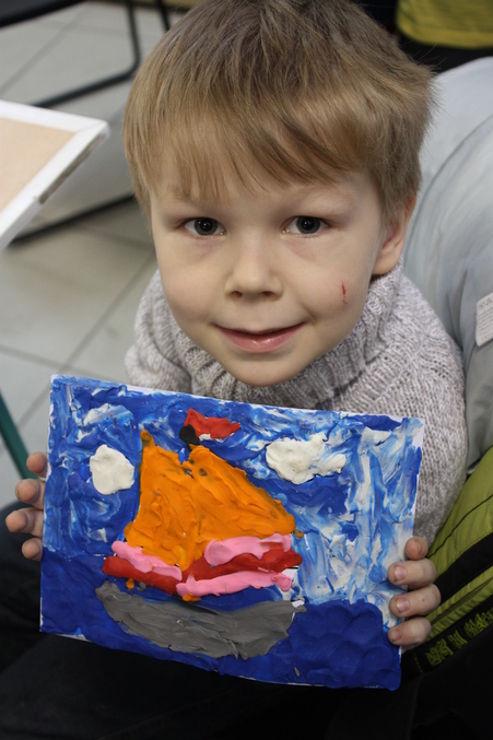 Все детки с большим интересом работали над своими картинками, даже мой старшенький, который немного неловко чувствовал себя среди малышей, активно включился в работу)
