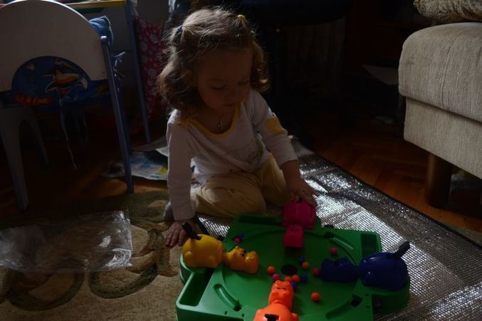 потом решила всех бегемотиков сразу накормить. Кстати, идеальная игрушка не нескольких детишек