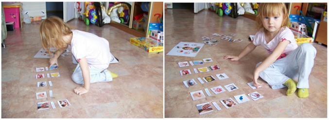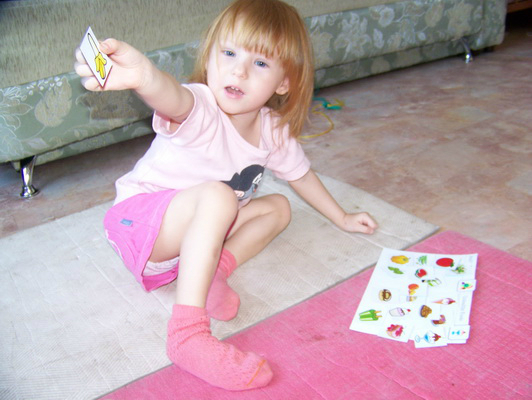 Вариант с лото, но прежде чем положить карточку на пустое место, нужно хорошенько изучить весь столбик! Очень нам понравился такой вариант.