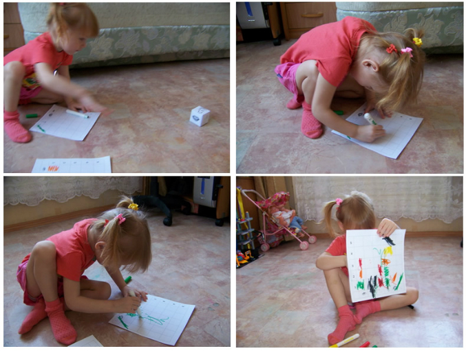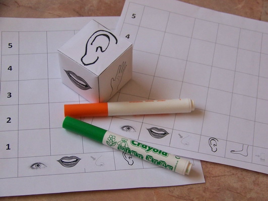 Мы выбрали вариант с фломастерами. Кидаем кубик, смотрим, находим, зачеркиваем клеточку, набираем 5 ячеек и выигрываем!