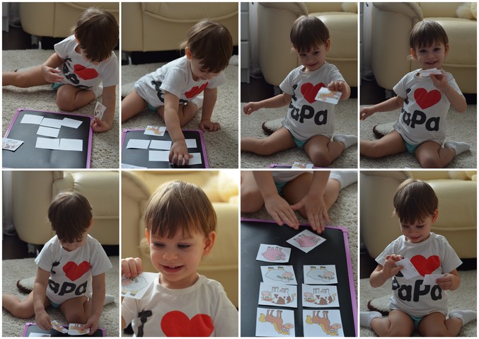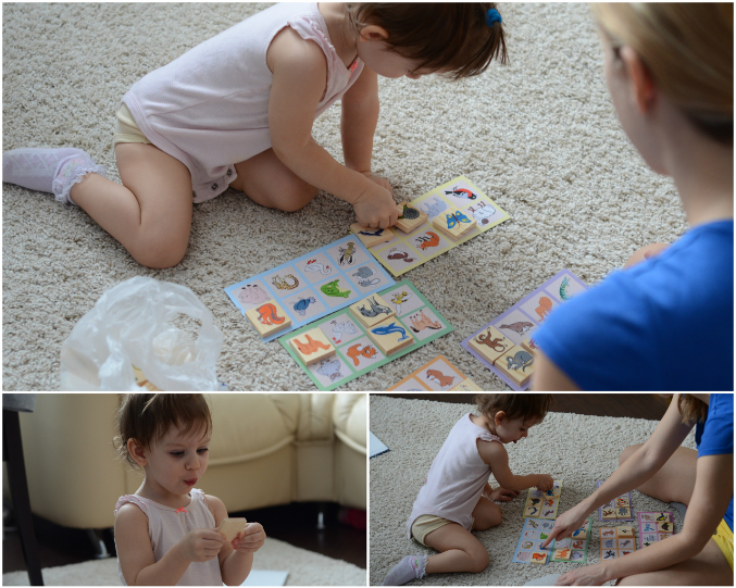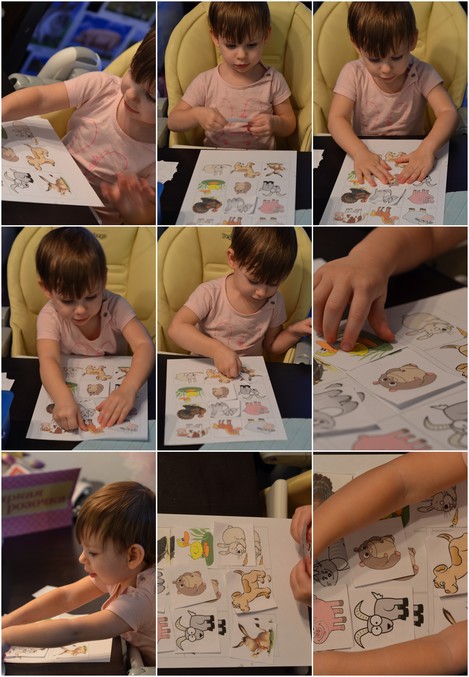 Играли в "Найди пару", по типу лото, Милана у нас любит подобные занятия, поэтому раскладывала карточки с удовольствием.