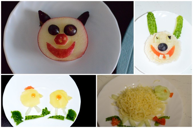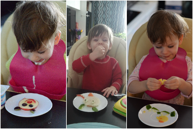 Забавная еда(немного страшновато у меня получалось, но Миланке нравится). Делала быстро, пока она основное блюда кушает.