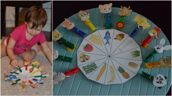Играли с прищепками "Кто что ест?"(игру нашла случайно в контакте, ссылку не сохранила, уже и не найду ее, но могу скинуть шаблоны на почту).