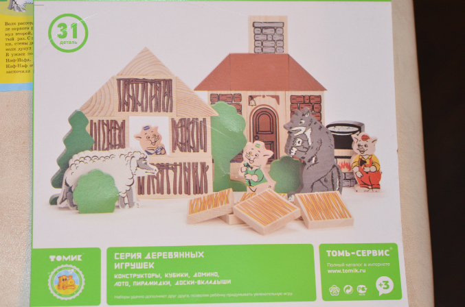 Мультик намеренно не показывала, чтобы играть больше. Понравилось в конструкторе то,что соломенный домик состоят из тоненьких кирпичиков, но его можно построить. Самое главное, его можно сдуть, как в сказке вместе с волком. Миланке очень это понравилось! Домик из хвороста чуть прочнее, мы его тоже сдували. К набору прилагается текст сказки. Милане полюбился самый умный поросенок, она с ним и ест, и моется, и спит)