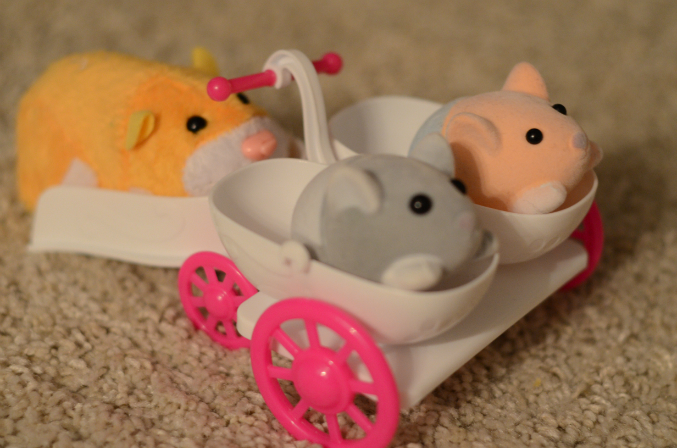 К ним купила отдельно коляску с хомячками-малышами, мама-хомяк их катает по квартире. Ребенок был таааак доволен, она весь вечер с ними носилась)