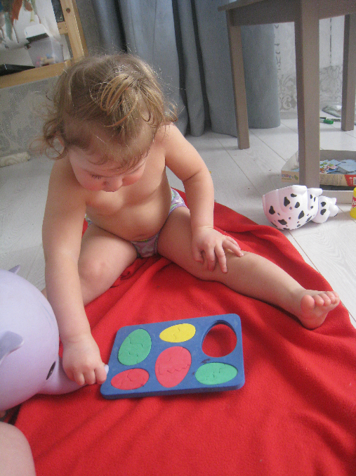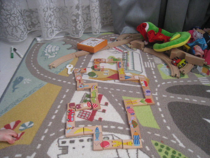 Дальше нашли нашу давнюю игру-пазл, в которой нужно яйца собрать. Пока самостоятельно ей сложно сложить все полностью. Но вместе уже намного лучше. Там, правда, как-то не очень удачно все разрезано, слишком запутано, но пусть будет сложно. На дольше хватит интереса.