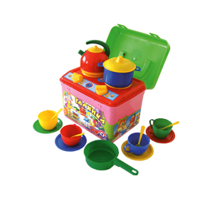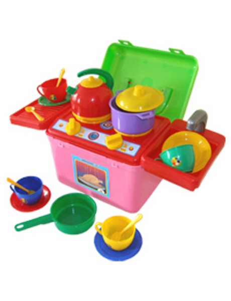 разные комплектации есть! называется кухня Галинка! удобно поиграл потом сложил ысе в чемодан! у нас без мойки такой есть чемоданчик!