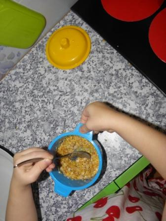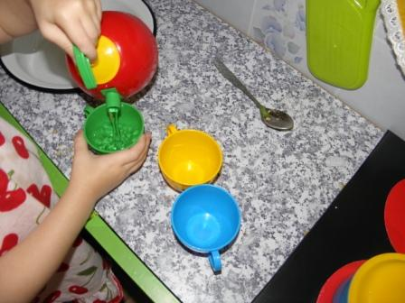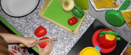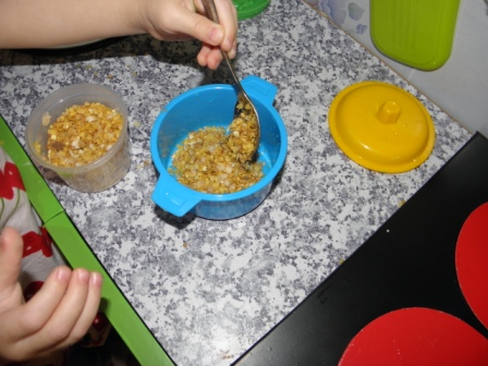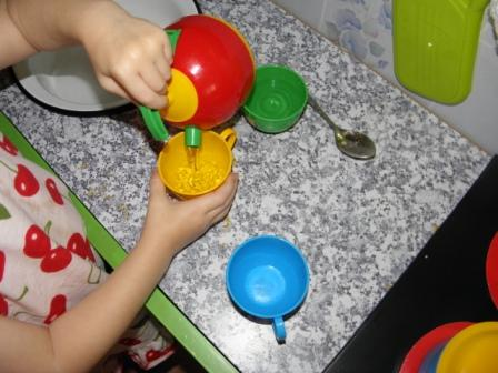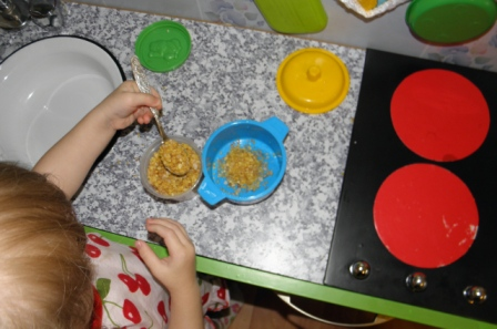 На своей любимой кухне у Полины ежедневно проходят занятия.... она играет , готовит каждый день! Вот и получается что она сама занимается ежедневно по методике монтессори!