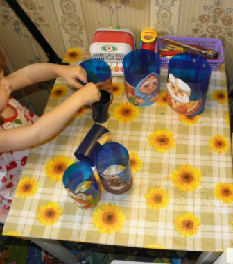 и приклеила их на горячий клей и заготовкам, заготовки быди сднланы из обычной папки для хранения бумаг первый цилиндр самый большой второй меньше и ниже на 1 см и так все! дна нет, для удобства!Можно поднимать первую матрешку и так достать все!
